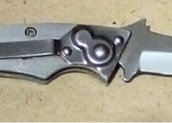 Нож пружинный кнопочный выкидной. Длина лезвия от кончика до рукоятки - 6 см. Общая длина - 15 см.